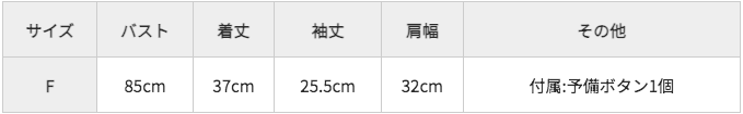 尺寸 :  胸圍85  全長37  袖長25.5  肩寬32    附屬品  :  預備鈕扣一個