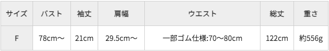 尺寸 :  胸圍78~  袖長21  肩寬29.5~  腰圍70~80  全長122  重量556g